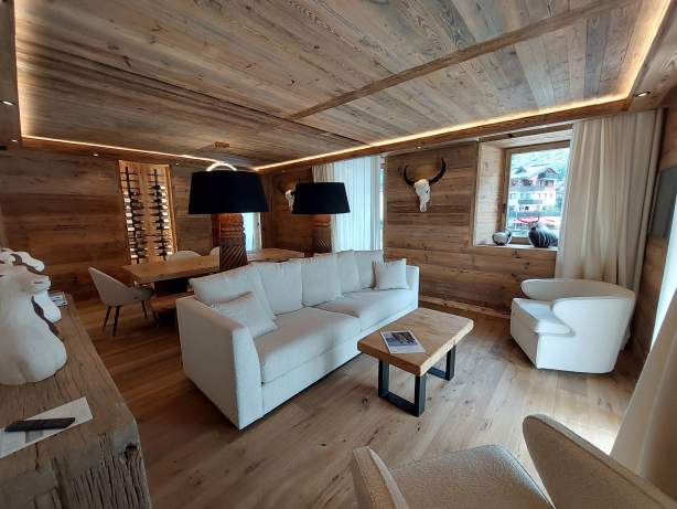 D'une superficie de 120m², cet appartement est la nouveauté de la Résidence Quartz Mont Blanc. Entièrement rénové avec de nobles matériaux, il s'agit d'un véritable cocon.